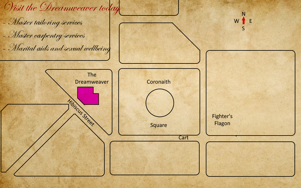 Set in the heart of Falkvard, the Dreamweaver is a famous store known for its masterwork tailoring, carpentry, and other services. We sell high quality works, from clothes and leatherworking to marital aids and sexual wellbeing alchemies. Visit today!